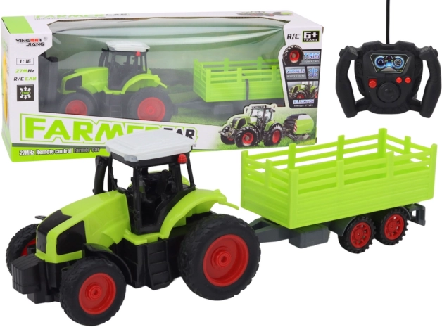 Ez az RC traktor gumi kerekekkel rendelkezik, amelyek biztosítják a stabilitást és lehetővé teszik a különféle felszínek leküzdését, a sima felületektől a hepehupás talajig. A távirányító segítségével a gyermek biztonságosan irányíthatja a traktor mozgását és élvezheti a dinamikus szórakozást.