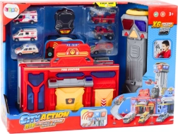 Ez a multifunkciós készlet igazi mentőszolgálati központtá változtatja a gyerekszobát. A bázis tűzoltóállomás és kórház szegmenseket, tetőtorony leszállóhellyel, valamint kiegészítőket tartalmaz az akciók irányításához. A járművek a dinamikus rámpán gurulhatnak le, miközben a belső tér tárolórekeszként szolgál. A fogantyúval az egész állomás könnyen hordozható, mint egy bőrönd.