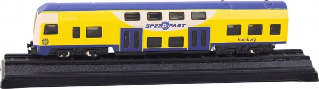 Fedezd fel a precízen kidolgozott nagysebességű vonatmodellt „Hamburg” és „Speedfast” feliratokkal, amely hű méretaránnyal és fém testtel nyűgöz le. A 1:48-as méretarány realista arányai, letisztult vonalai és finom részletei, mint az ablakok és ajtók, kiemelik a gyűjtői értéket.