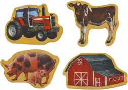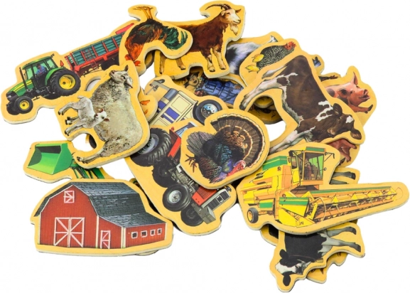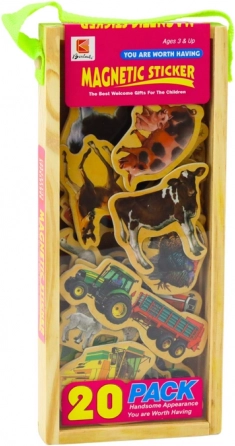 A farm témájú gyerek fa mágneskészlet színes háziállat- és mezőgazdasági gép motívumokat tartalmaz. A gyerekek saját történeteket alkothatnak, válogathatnak, megnevezhetnek és felfedezhetik, mi tartozik a vidéki élethez és hogyan működik egy gazdaság. A mágnesek erősen tapadnak a fém felületekhez, így ideálisak hűtőre és mágneses táblára.