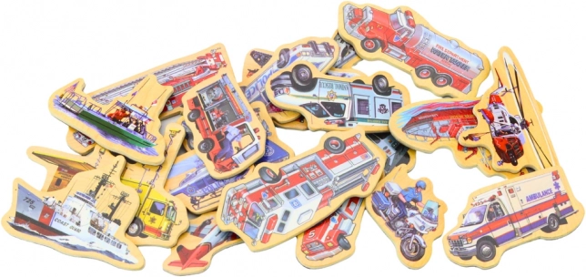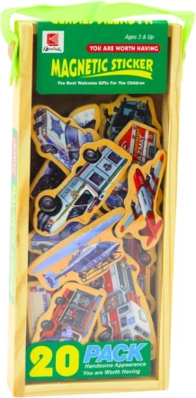 A készlet 20 különböző fa mágnest tartalmaz, mindegyik egyedi dizájnnal, ahol megtalálhatók járművek, hajók és repülők, amelyek segítik a gyerekeket a különböző közlekedési eszközök megismerésében.