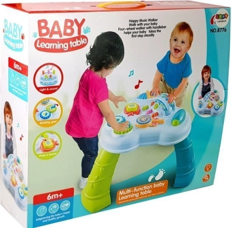 Az asztal stabil és biztonságos, tartós, nem mérgező anyagokból készült, megfelel a szigorú játékokkal kapcsolatos szabványoknak. Úgy tervezték, hogy támogassa az önálló állást és az első lépéseket. A hangeffektek stimulálják a gyermek hallását, a különböző színek és formák pedig a látást aktiválják.