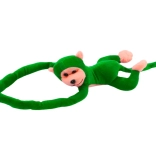 A bájos, zöld színű, 60 cm hosszú plüss majmocska minden gyermeket és felnőttet megörvendeztet. Puha, selymes kivitel, hosszú végtagok tépőzárral felakasztáshoz vagy öleléshez, valamint hanghatás a pocak megnyomására. Remek alvótárs, gyerekszobai dekoráció és eredeti ajándék.
