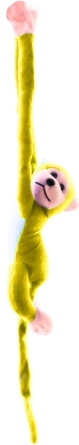 Ez a nagy, sárga plüss majmocska sok örömet és kényelmet nyújt. Finom, selymes anyagának köszönhetően ideális ölelgetéshez, játékos megjelenése pedig minden helyzetben mosolyt csal az arcokra. A tenyereken található tépőzáraknak köszönhetően a majom könnyen felakasztható a kiságyra, babakocsi karfájára, vagy „átölelheti” a gyermeket.