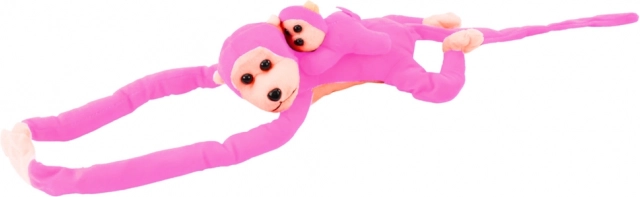 Ez a nagy, rózsaszín plüssmajom a bájos kölyökkel ideális a mindennapi játékhoz és a megnyugtató ölelésekhez. A hosszú karoknak és lábaknak köszönhetően, a tépőzárral a gyerekek a csuklójukra, a kiságy rácsára vagy az iskolatáskájukra rögzíthetik – móka és dekoráció egyben.