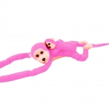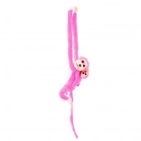 A 70 cm hosszú, aranyos rózsaszín plüssmajom kölyökkel puha kis barát a gyerekeknek. A hosszú végtagokon lévő tépőzáras rögzítésnek köszönhetően könnyen felakasztható a kiságyra vagy a hátizsákra. Selymes anyag, kényelmes ölelgetés és CE és EN71 tanúsítvány teszi biztonságos és szórakoztató játékká 3 éves kortól.
