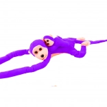 A lila szín és a kölyök jelenléte vonzóvá teszi a majmot a gyerekek számára, és kellemes látványt nyújt.