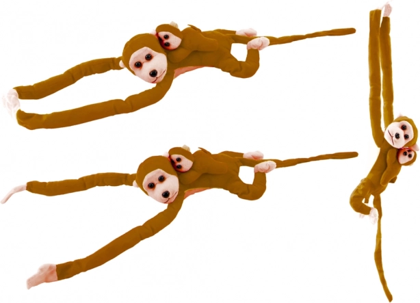 A plüss majom vonzza a figyelmet aranyos megjelenésével és puha anyagával, ideális az ölelgetéshez.