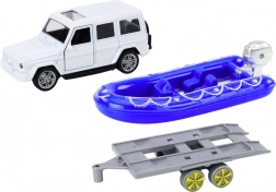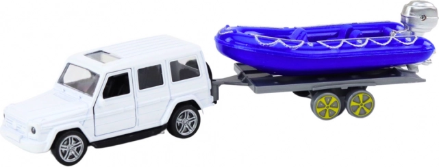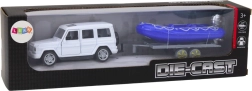 Élje át az izgalmas kalandokat a terepjáró autóval és a kék motorcsónakkal! Ez a fém modell precíz részleteket kínál, beleértve a nyitható ajtókat, ahol a gyerekek elhelyezhetik a sofőr és utas figurákat.