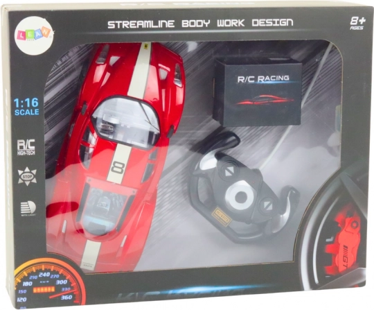 Az 1:16 méretarányú sportos RC autó a lendületes megjelenést, a pontos irányítást és a modern felépítést egyesíti. A kormánykerék formájú, intuitív vezérlő megkönnyíti az irány- és tempóváltást, így a szlalom és az éles kanyarok is élvezetesek lesznek, akár bent, akár kint.