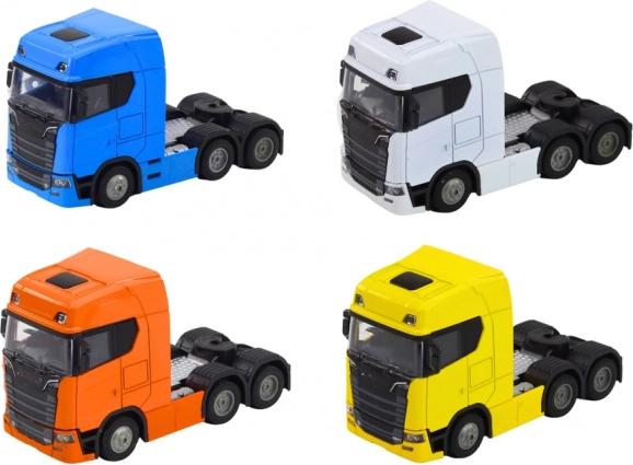 Részletesen kidolgozott, pótkocsi nélküli 1:32-es kamion, amely örömet okoz a kis sofőröknek és a modellrajongóknak. A fém részek tartósságot adnak a játéknak, míg a LED fények és a realisztikus hangok fokozzák a játékélményt. A lendkerekes meghajtás fürge haladást biztosít – csak húzd fel és engedd el.