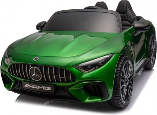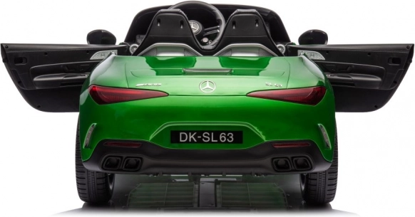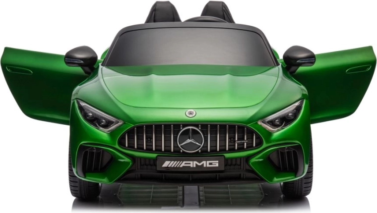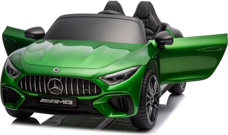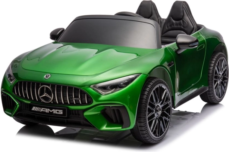 A stílusos gyermek elektromos autó MERCEDES‑AMG SL63 lakkozott zöld színben valósághű megjelenést, kétüléses kényelmet és rengeteg vezetési élményt kínál. A nyitható ajtók, a részletgazdag lámpák és a sportos kerekek prémium karaktert adnak az autónak, míg a masszív felépítés biztonságos és tartós használatot biztosít kint és bent egyaránt.