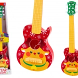 Ez a gyermek gitár, amely az elektromos gitár stílusát idézi, remek első lépés a zene világába. A vidám rénszarvasos, színes dizájn játékra ösztönöz, míg a fém húrok valósághű érzetet és hangzást adnak a hangszernek. A hátsó hangoló kerekeknek köszönhetően állítható a húrok feszessége, így különféle hangok és akkordok próbálhatók ki.