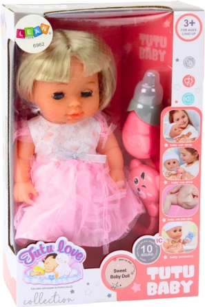 A szett speciális cumisüveget tartalmaz, amelyet vízzel lehet megtölteni. Amikor vízzel etetik, a baba valóban "pisilhet", ami autentikusabbá teszi, és lehetővé teszi a gyerekek számára, hogy a gondozó szerepébe beleéljék magukat. A baba etetésével és pelenkázásával való játék felelősséget és mások iránti gondoskodást tanít.