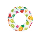 Ez a gyerek felfújható úszógumi tökéletes választás az első vízi élményekhez. A könnyű szerkezet és a strapabíró PVC anyag stabilitást és kényelmet biztosít úszás és pancsolás közben. A vidám halacskás, tengeri élőlényes, fagyis és gyümölcsös minták minden gyermeket felvidítanak, és színesebbé teszik a nyári napokat.