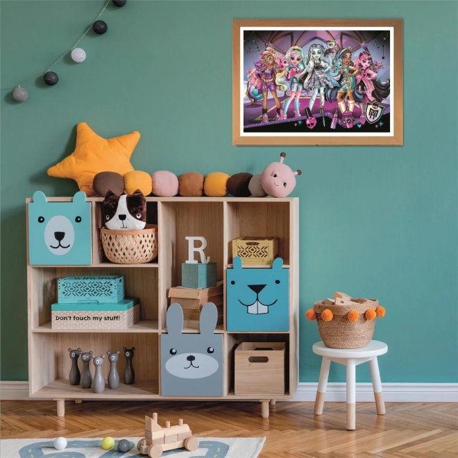 A Monster High szereplőivel készült vibráló illusztráció fenntartja a figyelmet és támogatja a gyerekek kreativitását.
