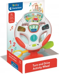 A CLEMENTONI Baby interaktív kormánya nagyszerű játék a kis sofőröknek. A LED fény, a hangeffektek és a melódiák serkentik az érzékszerveket, és támogatják a kéz–szem koordinációt. A középső számos gomb játékosan tanítja meg az első számjegyeket.