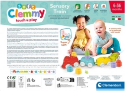 Puha vonat mozdonyból és vagonokból, amelyekkel a gyerekek játszhatnak és kézzel felfedezhetik a felületüket.