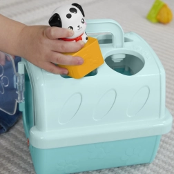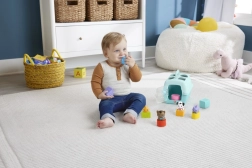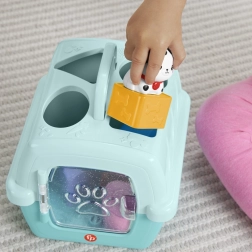 A szállító tetején lévő nyílások arra ösztönzik a gyerekeket, hogy megkeressék a megfelelő formákat és színeket, ezáltal természetesen fejlődik a koordinációjuk és a logikus gondolkodásuk.