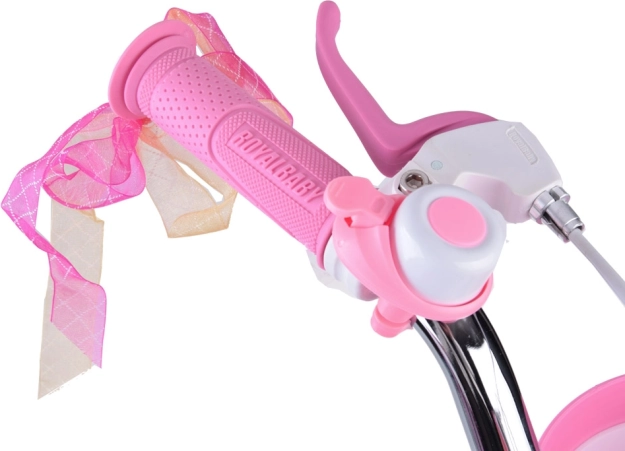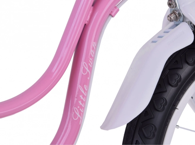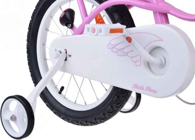 A ROYALBABY Little Swan 14" bájos gyerekkerékpár rózsaszín-fehér színösszeállításban, az első tekerésekhez tervezve, kiemelt biztonsággal, komfortral és könnyű tanulhatósággal. A könnyű acél váz megkönnyíti a fel- és leszállást, a magas profilú, csúszásgátló mintázatú külsők pedig biztos tapadást adnak.