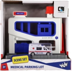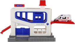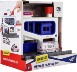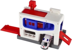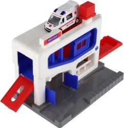 Ez a parkológarázs tökéletes játék készlet 3 éves kortól gyermekek számára. A szett tartalmaz egy műanyag garázst és egy mentőautót, amely ideális játszásra és tanulásra. A gyerekek fejleszthetik motoros képességeiket és a mentőmunkával kapcsolatos megértésüket.