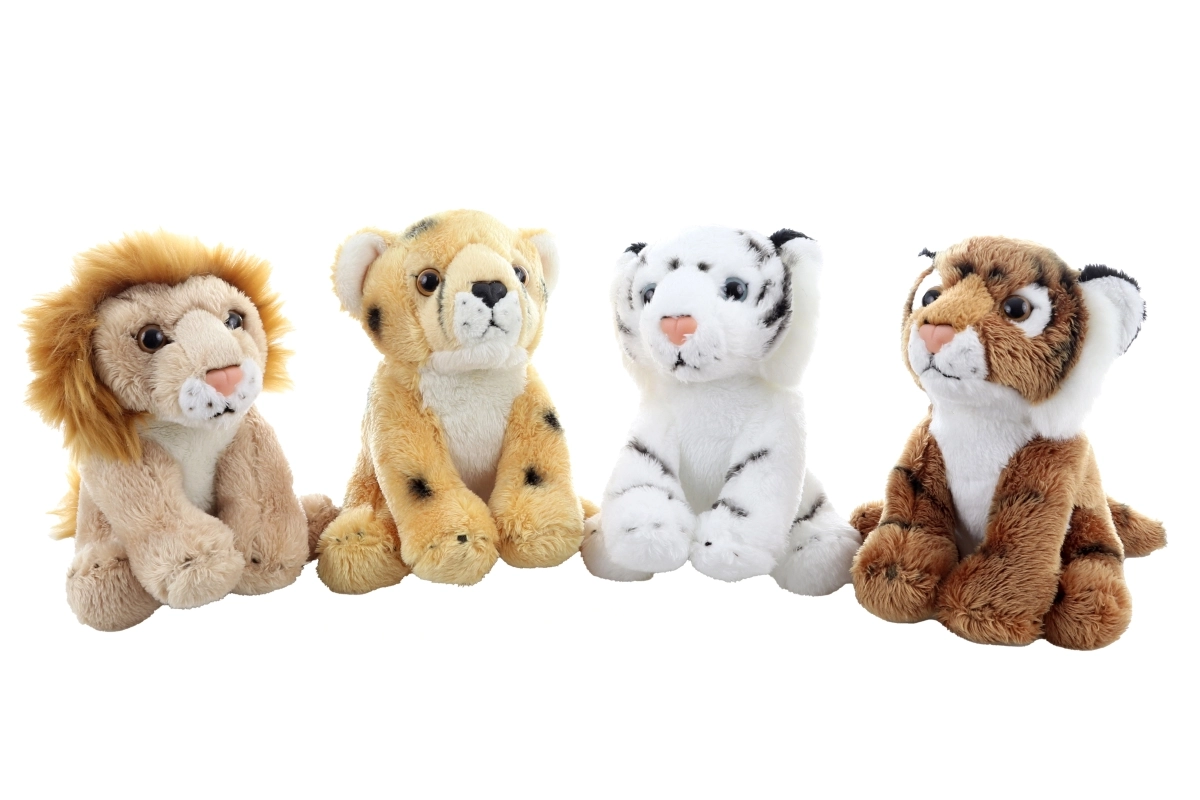 A 15 cm-es, aranyos plüss vadállat kicsiknek és nagyoknak egyaránt örömet okoz. Környezetbarát anyagokból készült, puha, 10 hónapos kortól biztonságos, és ideális ölelgetésre és játékra. 4 féle változatban kapható (oroszlán, gepárd, tigris, fehér tigris) – a raktárkészlet függvényében szállítjuk.