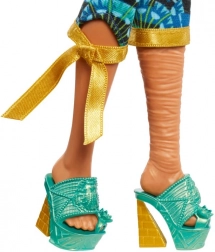 Cleo De Nile baba az év legforróbb zenei eseményére, a Monster Festre készül! Arany ujjas felsője, drágakőszínekben ragyogó nadrágja és lótuszmotívumos koronája kiemeli hosszú, kék haját. A ízületeknek köszönhetően könnyedén beállíthatók a menő pózok fotózáshoz és történetmeséléshez.