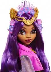 A MONSTER HIGH Clawdeen Wolf – Monster Fest baba szórakozást, stílust és egy csipetnyi „rémesen aranyos” bájt hoz minden gyűjteménybe. Clawdeen topja és szoknyája csillagképmintával ragyog, amelyet „kristályos” fejpánt, arany öv és puha, bolyhos részletek egészítenek ki. A mozgatható ízületeknek köszönhetően könnyedén megy a tánc és a fesztiválpóz a kamera előtt.