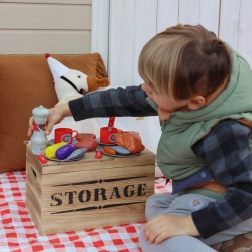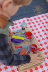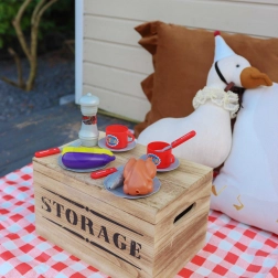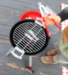 A szett mindent tartalmaz, ami egy családi BBQ eljátszásához kell: rácsnyílások, gazdag műanyag ételek választéka (virslik, steakek, csirke, halak, kukorica, padlizsán), eszközök, tányérok, poharak és még egy borsdaráló is. A levehető fedél megóvja a rácsot a „grillezés” után, és a kerekeknek és fogantyúnak köszönhetően a gyerekek könnyedén átgurítják a teraszra vagy a gyerekszobába.