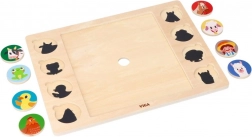 A masszív fa és a sima élek kellemes fogást biztosítanak, és ellenállóvá teszik a kirakót a mindennapos használatra. Az áttekinthető formák és a kontrasztos színek a legkisebbeknek is megkönnyítik a helyes párosítást. Az oktató „árnyék vs. forma” megoldás segít a részletek észlelésében és edzi a vizuális memóriát.