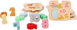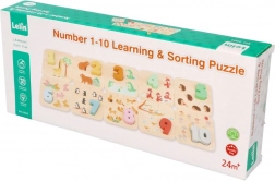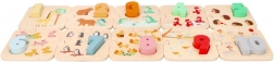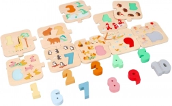 Ez a minőségi, fából készült oktatójáték támogatja a korai matematikai készségeket. A gyerekek az 1–10-ig terjedő számokat a megfelelő állatos elemekhez párosítják, így természetes módon sajátítják el a számolást és a válogatást. A tartós fa kivitel és a feltűnő színek ösztönzik a többszöri játékra.