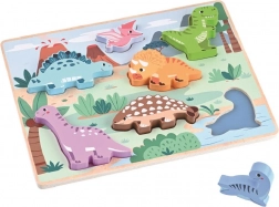 Ez a fa 3D dinoszaurusz-kirakó ideális első puzzle a legkisebbeknek. A kedvelt dinoszauruszok formájú elemek könnyen megfoghatók és a megfelelő kivágásokba illeszthetők, ami fejleszti a kéz–szem koordinációt és a türelmet. A vidám színek és barátságos formák újra és újra játékra hívnak.