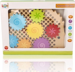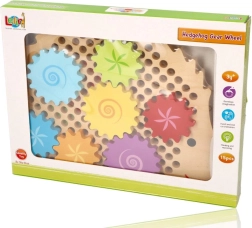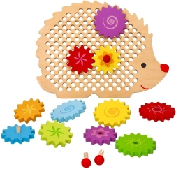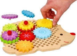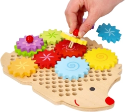 A sündisznó alakú fa kirakó színes fogaskerekekkel támogatja a korai tanulást játékon keresztül. A gyerekek a csapokra helyezhetik a kerekeket, kipróbálhatnak különféle kombinációkat, és figyelhetik, ahogy minden kerék megfordul. Ez erősíti a logikus gondolkodást, és természetes módon szemlélteti az ok–okozati összefüggéseket.