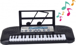 Elektromos zongorácska gyerekeknek elegáns fekete színben, 37 billentyűvel, mikrofonnal és kottatartóval órákon át tartó szórakozást és tanulást nyújt. Támogatja a zenei fejlődést, a kreativitást és az előadói magabiztosságot a zongora, gitár, zenélődoboz és hegedű hangjait utánzó funkcióknak köszönhetően.