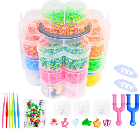 A kreatív gumikészlet karkötők és más egyedi tárgyak készítésére lehetőséget ad, hogy minden gyermek tervező és divatvízionárius legyen. Színes gumik lehetővé teszik az egyszerű egyszínű karkötők és bonyolult többszínű projektek megalkotását. Gyöngyök egyedi bájt adnak minden projekthez, lehetővé téve az összetett és elegáns minták létrehozását.