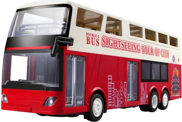 A 1:18 méretarányú kétemeletes RC busz ideális játék a modell járművek szerelmeseinek. A levehető tető révén a gyerekek akadálytalanul csodálhatják a tájat. A busz tartós ABS műanyagból készült, mely hosszú élettartamot és ütésállóságot biztosít.