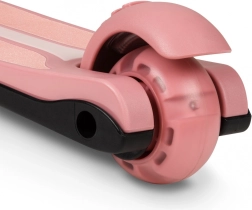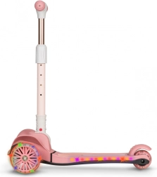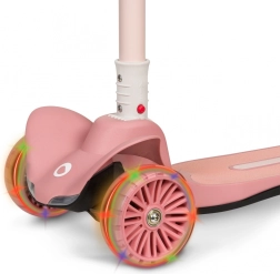 A LIONELO Timmy Pink Rose könnyű és biztonságos gyerekroller, amelyet kényelmes első suhanásokhoz terveztek. Két nagy első és egy hátsó kerék kiváló stabilitást ad, míg a lean-to-steer (dőlésirányításos) kanyarodás támogatja az egyensúly és a motoros készségek fejlődését. A LED fények a kerekekben mozgásra aktiválódnak, a LED fellépővilágítás pedig növeli a láthatóságot és a szórakozást.