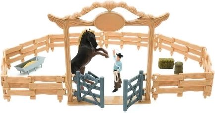 A Nyugati ranch gyerekeknek lóval és cowboyjal ideális választás minden gyermek számára, aki szereti a kalandokat és a fantáziát. Ez a játék lenyűgözi csodálatos részletességével és az egyes figurák hitelességével. A ranch kiváló minőségű polivinilkloridból készült, amely garantálja a tartósságot és a hosszú élettartamot.