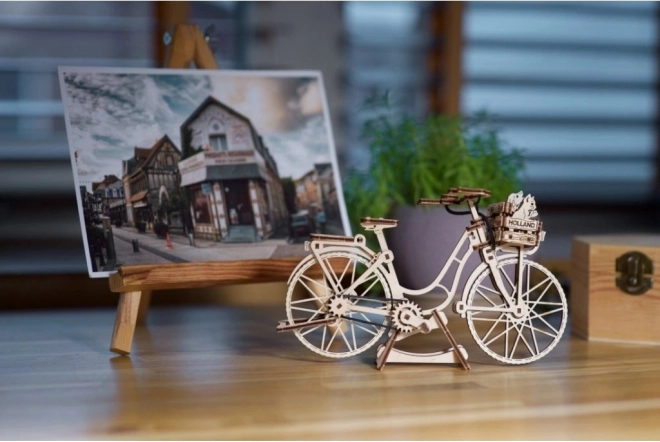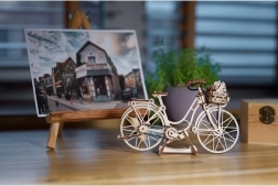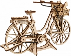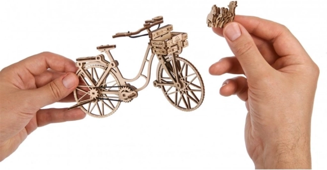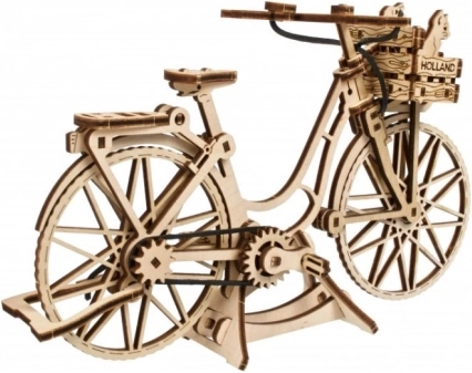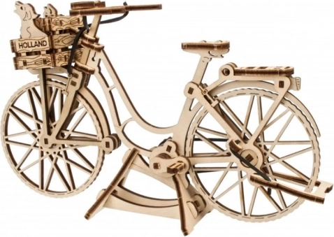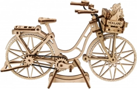 Az Ugears Holland kerékpár hűen idézi meg az amszterdami utcák ikonikus városi biciklijét – elegáns vázzal, első kosárral és hátsó csomagtartóval. Az elemeket lézerrel pontosan előre vágták, és tisztán illeszkednek egymáshoz, így a modell kényelmesen, ragasztás nélkül körülbelül 1,5 óra alatt összeállítható. Elkészülte után élethű funkciókkal örvendeztet: forgatható kormány, mozgó pedálok gumilánccal és forgó kerekek.