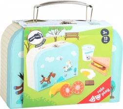 A kék Small Foot uzsonnás bőrönd valósághű élményt nyújt főzős vagy piknikes játékokhoz. A minőségi fa és a gondos kidolgozás kellemes tapintást, tartósságot és mindennapi használat mellett is biztonságot nyújt. A gyártó, Legler, nagy hangsúlyt fektet a fenntarthatóságra – a fa túlnyomórészt felelős erdőgazdálkodásból származik.