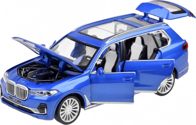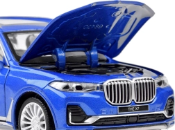 Ez a részletgazdag BMW X7 modell kiváló választás gyerekeknek és gyűjtőknek egyaránt. A karosszéria lenyomására motorhang és menet-hangeffektek indulnak, az első és hátsó lámpák felgyulladnak, és a ajtók kinyitásakor riasztó villogó fényekkel és dudával aktiválódik. Az üvegezett tető és a műszerfal megvilágított eleme még realisztikusabb megjelenést kölcsönöz a játéknak.