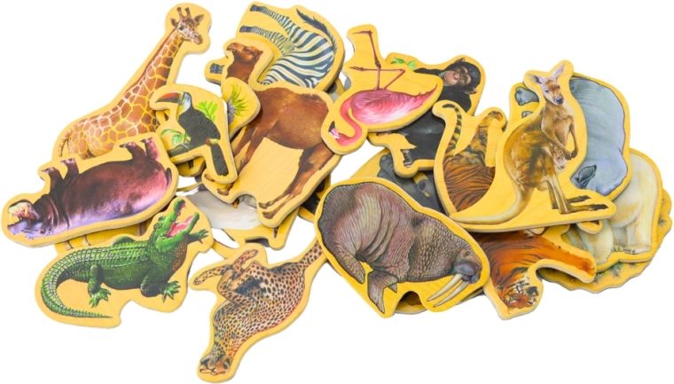 Minden mágnes részletgazdag állatnyomattal rendelkezik, és segíti a gyerekeket a szókincs, a képzelet és a természetismeret fejlesztésében.