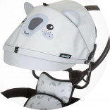 A biztonság mindig elsődleges: a háromkerekű levehető biztonsági karfával, ágyéki pánttal és lehajtható lábtartóval felszerelt. Az első kerék sárvédőt és védőburkolatot kapott, amely megakadályozza a gyermek lábának beakadását.
