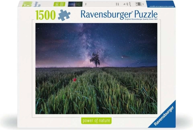 A puzzle gyönyörű éjszakai égbolttal ragadja meg a Tejutat, megőrizve a mező nyugodt hangulatát. Bűbájos dekorációt alkot otthonában.