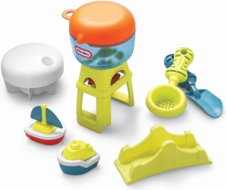A gyerekek vizet önthetnek, homokból alkothatnak, és kombinálhatják a tevékenységeket a maximális szórakozásért, miközben fejlődik a finommotorika és a képzelet.