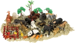 A csomag tartalma: 51× állat, 3× fa, 1× pálma, 4× kerítés – összesen 59 darab.