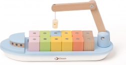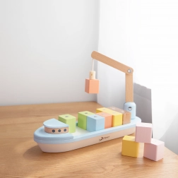 Fedezd fel a Classic World színes, mágneses blokkokkal felszerelt fa hajóját, amelyet a gyerekek a mozgatható daruval pakolhatnak és kirakhatnak. A színes elemek fejlesztik a finommotorikát, a kreativitást és a koncentrációt, miközben a biztonságos, éles élektől mentes kivitel nyugodt játékot biztosít.