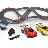Élvezd az izgalmas futamokat a Racing Collection sorozat versenypályájával. A szett tartalmaz 2 versenyautót, 2 kézi vezérlőt, hidat tartozékokkal és EU hálózati adaptert. A pálya összesen 440 cm hosszú, az összeállítás mérete 120 × 100 × 12 cm, ami rengeteg szórakozást garantál a sebesség szerelmeseinek kicsiktől nagyokig.