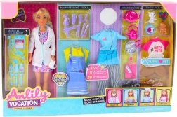 Anlily 4 az 1-ben baba – orvos, fodrász, szakács és állatgondozó ruhákkal és kiegészítőkkel