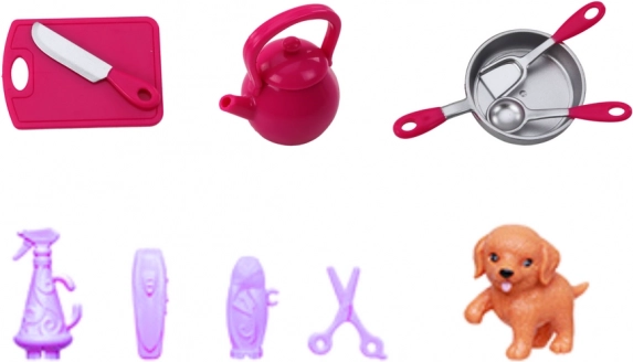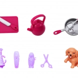 A készlet apró konyhai eszközöket és kisállat-játékokat tartalmaz a még változatosabb történetekhez és életképekhez.